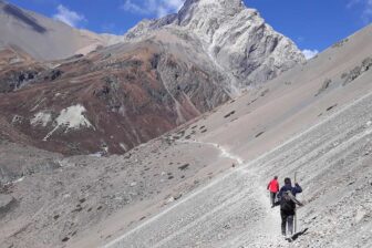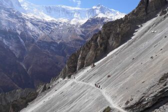 En longeant la rivière Marsyangdi, nous montons à Khangsar, dernier village de la région. Déjeuner et repos puis nous continuons à flanc de montagne jusqu’au camp de base de Tilicho.