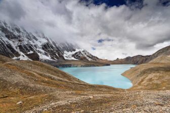 Belle montée par les moraines jusqu’au lac. A environ 5000 m d’altitude, le lac Tilicho est l’accumulation glaciaire de toute la partie nord des Annapurna. Le lac est un haut lieu de pèlerinage hindou lié au Ramayana. Vue spectaculaire des remparts de glace de l’Annapurna et de Tilicho Peak (7134 m). Le bord du lac, parsemé des fleurs sauvages en printemps et été. Retour à Tilicho Base Camp pour la nuit.